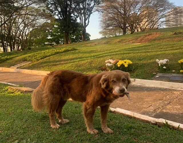 Um cachorro chamado Bob mora em um cemitério de Taboão da Serra, em São Paulo, desde que sua tutora faleceu e foi sepultada no local. Conhecido como ‘Bob coveiro’, o animal vive no cemitério há 10 anos.