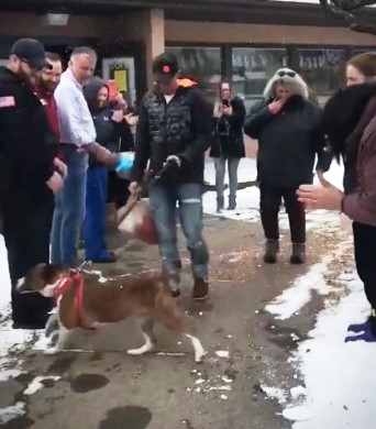 É impossível não perceber a reacção deste cão que comove quem vê as imagens que expressam a imensa alegria deste animal, que salta de um lado para o outro saudando todos os que aplaudem pelo seu novo lar.