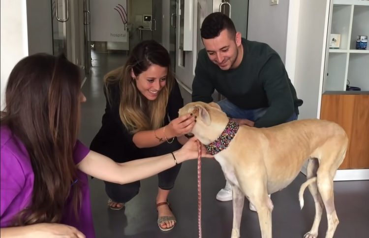A princípio, o cão não entendeu o que exatamente estava acontecendo. Ela estava com medo de se encontrar diante de dois estranhos e isso a levou a puxar a corda para tentar fugir. No entanto, todos foram muito pacientes e fizeram com que ela se sentisse segura e que ninguém a machucaria.