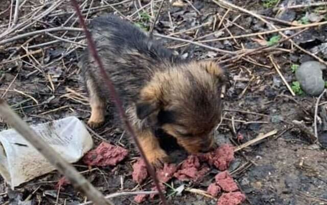 No local, o homem notou um sapato velho ao lado de uma pilha de lixo, que a cachorrinha usava como abrigo para se proteger do frio. A filhote era bem nova na ocasião, por isso Goran procurou a mãe dela por perto, mas não a encontrou.