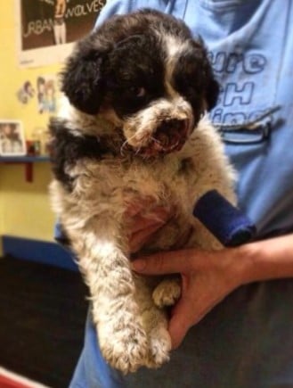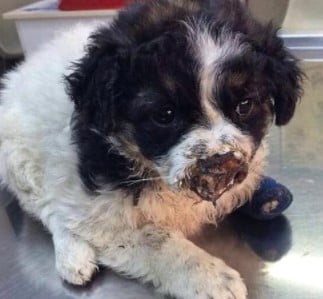 A pet, quando ainda pequena, perdeu parte do focinho, boca, cauda e também teve a pata dianteira esquerda gravemente ferida. Vagando pelas ruas e sofrendo muito, quase foi sacrificada, mas o Centro de Resgate Animal Beacon (Beacon Animal Rescue Center) evitou esse final e a levou para o Reino Unido para tratamento médico e para encontrar um lar.