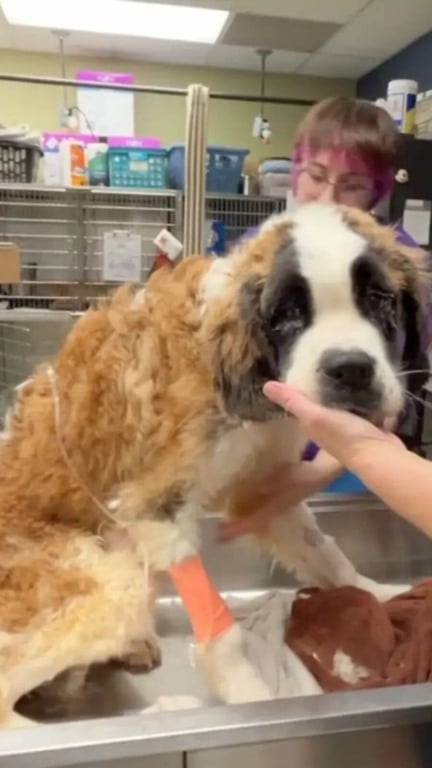 Alguns dias antes do Natal do ano passado, a equipe do resgate de animais Stray Rescue of St. Louis (SRSL) recebeu uma ligação devastadora. Um homem tinha acabado de encontrar um cachorro São Bernardo vivendo sozinho em uma casa vazia. E o pobre cão não estava indo bem.