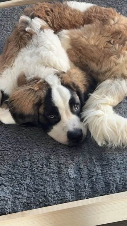 “Ele acha tudo confortável, mas especialmente adora essa grande cama personalizada do tamanho de um São Bernardo“, escreveu a ONG em uma atualização no Facebook. “Ele conheceu os cães residentes e gostou muito deles. Stu passa a maior parte do tempo dormindo e se curando.”