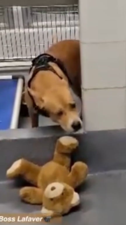 Enquanto se adaptava a um ambiente novo e estranho, uma cadelinha chamada Luna manteve seu ursinho de pelúcia por perto, recusando-se a ir a qualquer lugar sem ele. A família de cachorro tinha acabado de entregá-lo ao San Antonio Animal Care Services, e o ursinho era a única coisa que lhe restava de casa.