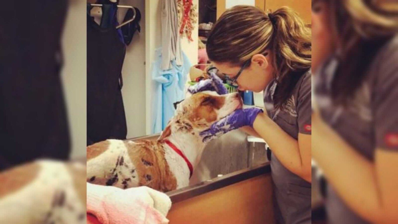 Depois de uma semana da sua alta, o cachorrinho voltou a clinica para um check-up e assim que o veterinário entrou nas salas de exames o cachorro deu um pulo em seu colo com um carinhoso abraço e muitos gritos de felicidade.