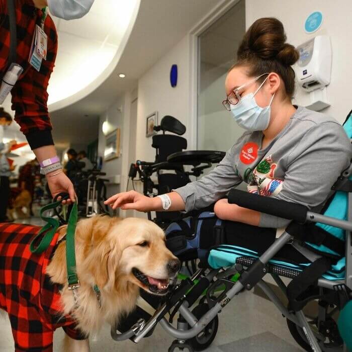 Os cachorros fazem parte do programa Texas Children’s Pawsitive Play, que é “projetado para melhorar o bem-estar emocional dos pacientes”. “Os cães de terapia com animais fornecem apoio àqueles que podem estar tendo problemas para enfrentar uma estadia no hospital, um novo diagnóstico ou um determinado procedimento médico”.