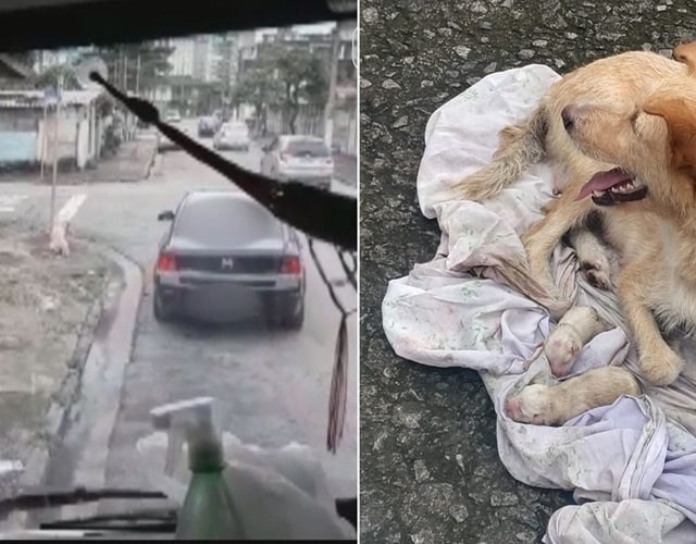 Uma cadela grávida foi abandonada em Santos, no litoral paulista, horas antes de dar à luz a seis filhotes. Um vídeo divulgado nesta quinta-feira (13) mostra o momento do abandono.