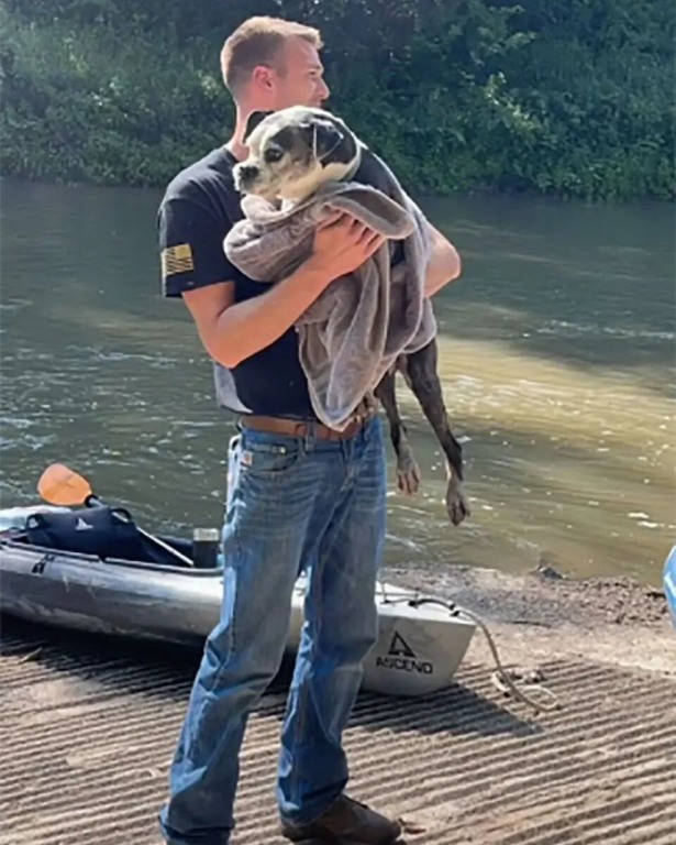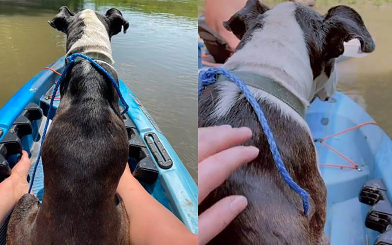 Em julho deste ano, um grupo de canoístas que treinava no rio Chariton, próximo a Centerville, no Iowa, nos EUA, encontrou uma cadela perdida. O treino foi imediatamente interrompido para resgatar o animal, que estava perdido e muito assustado.