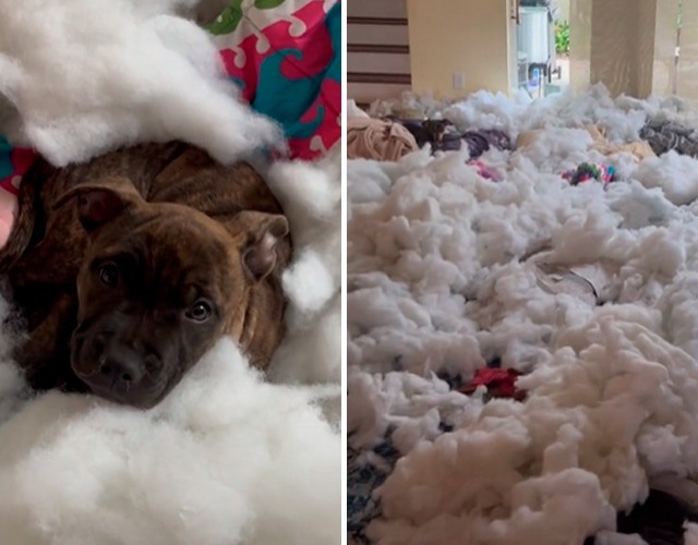 Aparentemente, Jazmine e Hazel decidiram que queriam ver o que exatamente estava dentro do pufe gigante que sua família tinha, e arrancaram absolutamente tudo dela. Robinson os encontrou inocentemente cochilando no meio de sua destruição. “Ela nem tenta arrancar o enchimento ou os guinchos de seus brinquedos, então o massacre do pufe foi inesperado”, disse Katie Robinson, mãe de Jazmine, ao The Dodo.