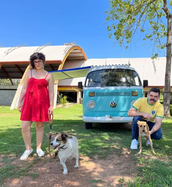Segundo o casal, os cachorros já estão acostumados a viajar com eles a distâncias curtas. A viagem dessa vez, contudo, será um novo desafio para todos. Afinal, eles pretendem viver por um tempo na kombi, contendo um espaço adaptado para os animais.