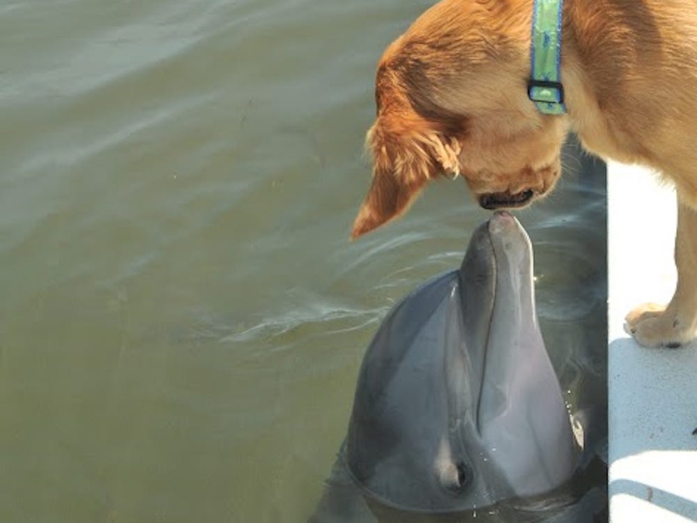 “Quando [Gunner] foi às docas pela primeira vez, eu esperava que ele latisse ou ficasse muito animado, mas ele fez exatamente o oposto: apenas se deitou e assistiu”, disse Blanton. Aparentemente, esse comportamento calmo intrigou Delta, então com 4 anos, que Blanton descreve como “muito amigável, brincalhão e curioso”. “Comecei a notar que toda vez que eu trazia Gunner, Delta era o primeiro golfinho a chegar ao cais. Ele trazia seus brinquedos como se estivesse tentando brincar com ele”, disse ela.