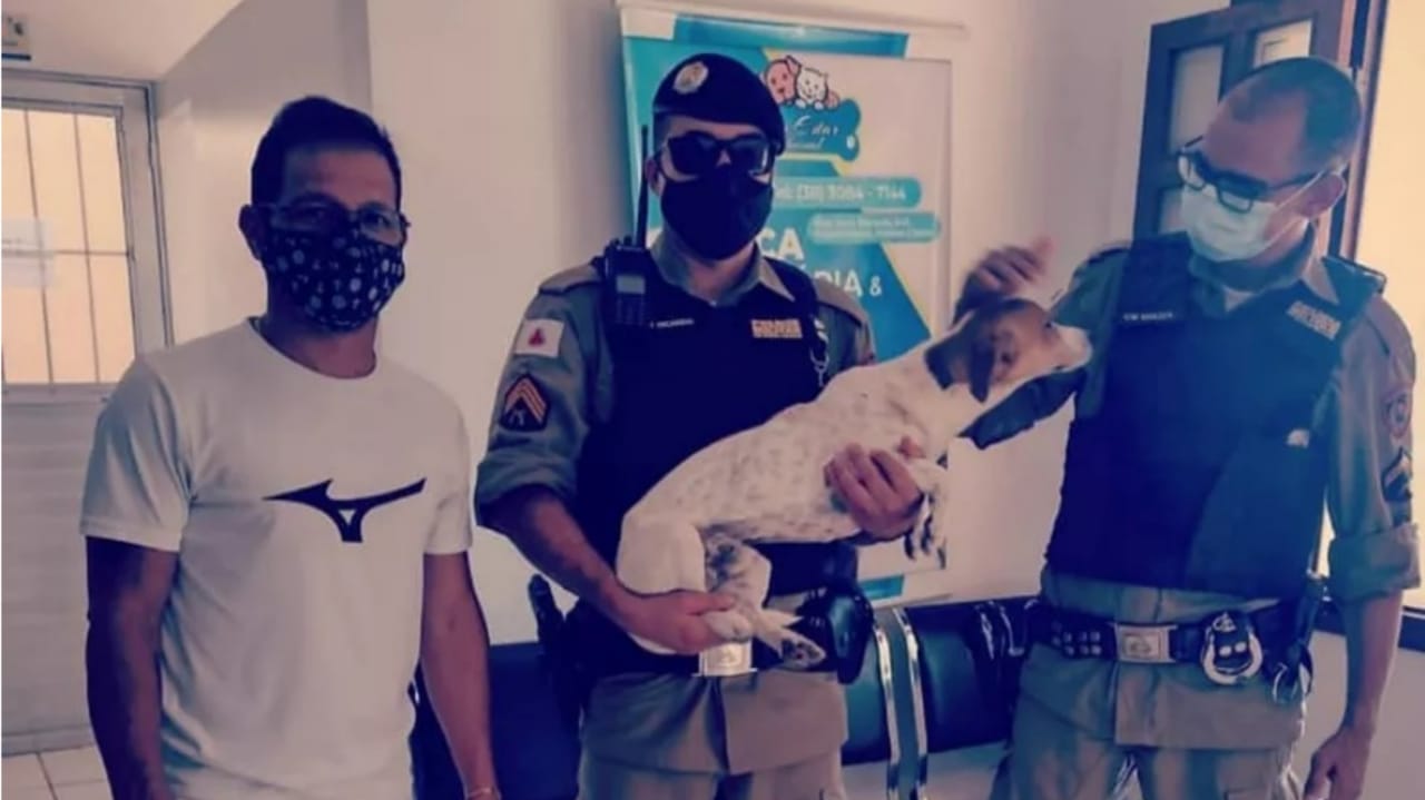Fofinho ficou conhecido nacionalmente após levar quatro facadas para defender a dona que estava sendo ameaçada pelo marido, em Coração Jesus, Minas Gerais. Nesta terça-feira (27), os policiais Valmintas Souza e Diego Garcia puderam levar o cachorro herói de volta para a dona, após se recuperar dos ferimentos. “Um reencontro emocionante”, comentaram os cabos.