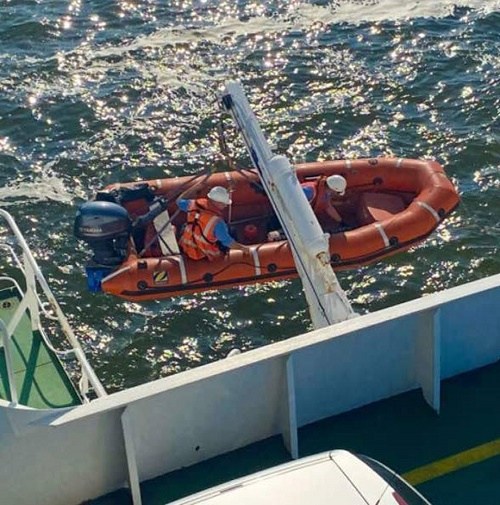 Os passageiros avisaram a tripulação, que notificaram os superiores e O Capitão Simon Brindle rapidamente parou a balsa.