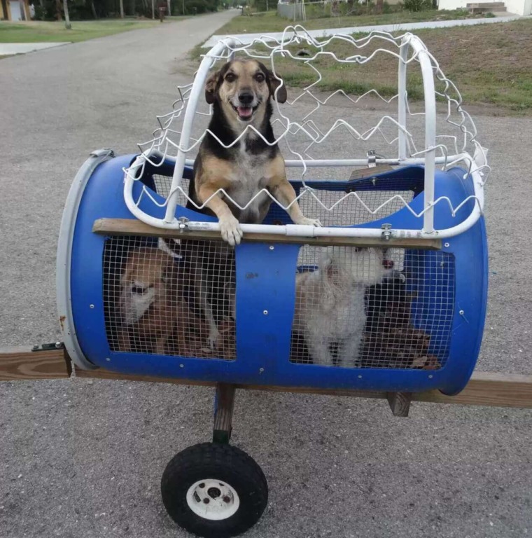 De acordo com Alice, são tantos cachorros que seria impossível colocar todos no carro para passear. “Então, meu marido construiu um trem para que pudéssemos levá-los para passear, dirigir pela comunidade. Ele puxa o trem com um cortador de grama, e eu ando de scooter atrás dele para ficar de olho nas coisas, para ter certeza de que elas estão seguras”, contou ao The Dodo.