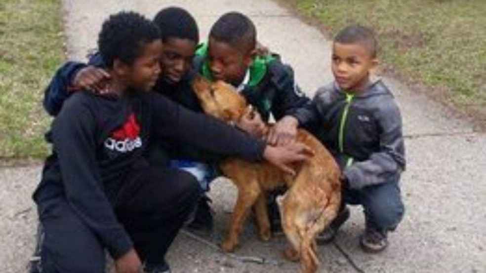 No outro dia, quando levaram o cachorrinho para passear e tomar um sol na rua, encontraram membros de uma ONG de resgate de animais. As crianças contaram ao Detroit Pit Crew Dog Rescue toda história do resgate.