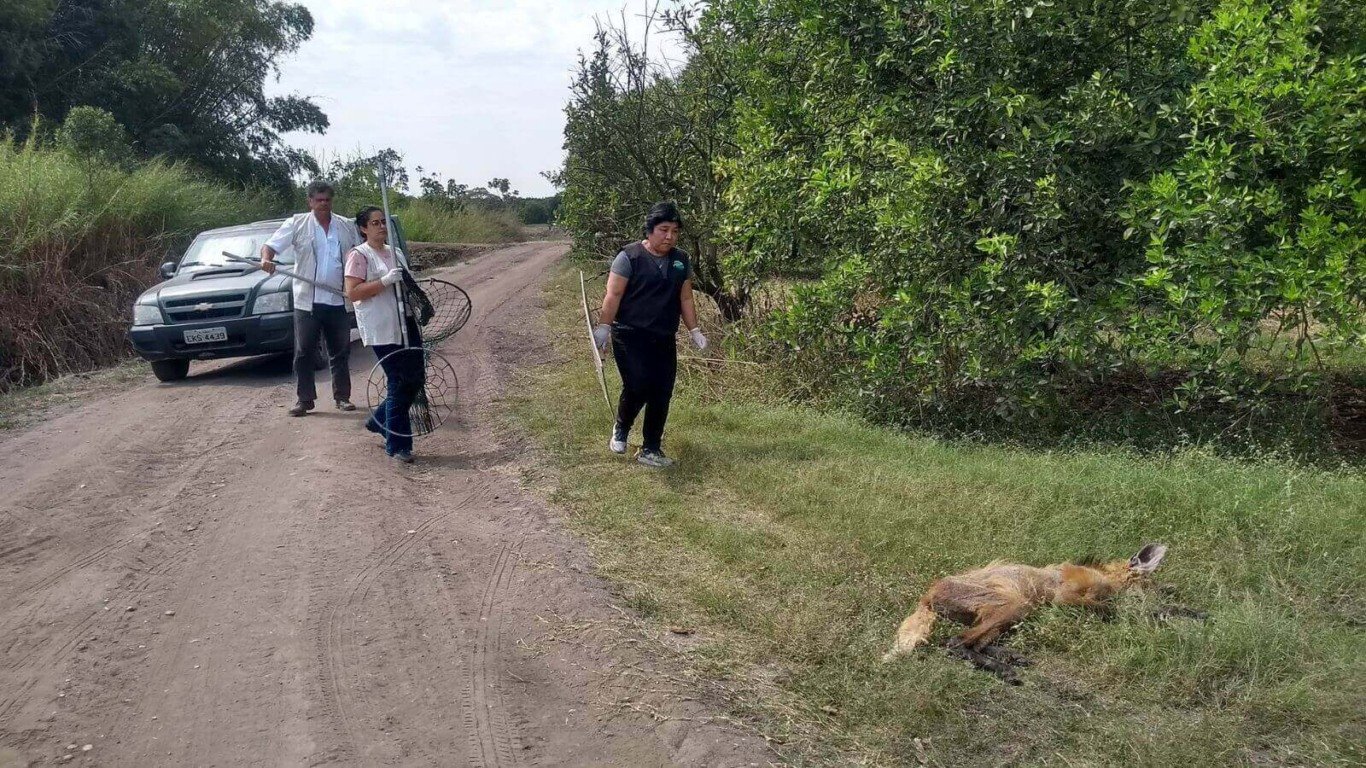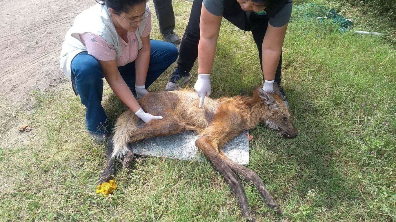 O lobo-guará, um dos maiores canídeos de vida silvestre, se encontra em ameaça de extinção. “O animal estava muito prostrado e apático, pouco reagiu com nossa presença e estava com o corpo todo tomado pela sarna”, explica Karine Ferreira, veterinárias da Mata Ciliar.