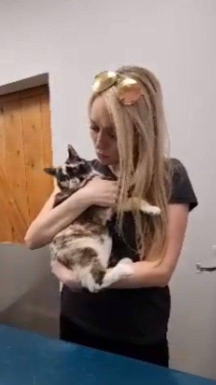 “Reservamos um voo noturno para a Califórnia para buscar nossa gatinha”, disse Carrie. “Nós a amamos muito. Queríamos trazê-la de volta para casa. Quando chegamos ao veterinário, pudemos nos reunir com ela.”