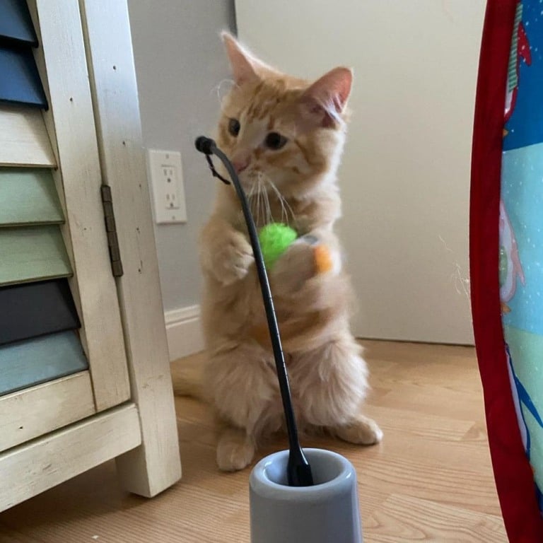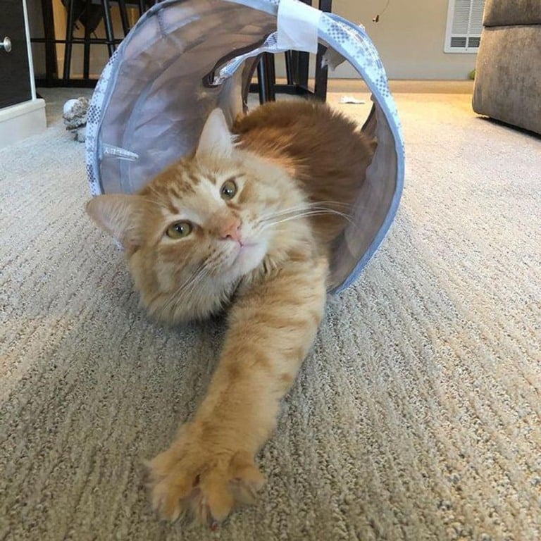 Depois de semanas procurando o lugar certo, uma família caiu de pernas para o ar pelo gatinho. Acabou sendo a combinação perfeita. “Ele é muito adaptável e adora as pessoas e a atenção que elas lhe dão. Ele é tão vocal quanto elas vêm e adora miar, grasnar, guinchar e ronronar o dia todo “, a mãe humana de Frito compartilhou. “Sua personalidade adorável e peculiar sempre ilumina o meu dia. Ele adormece nas posições mais estranhas. Seu lugar favorito está pendurado no meu ombro. E ele traz um sorriso ao meu rosto com seus miados e trinados perfeitamente sincronizados.”