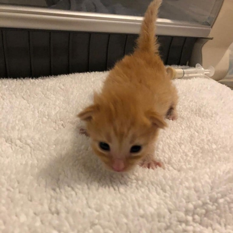 Apesar de ter poucos dias, o gatinho era do tamanho de um recém-nascido. Frito em apenas alguns dias, ganhou o peso necessário e seu nível de energia disparou. “Ele era tão pequeno que pedi emprestado uma incubadora para ajudá-lo a se sentir confortável. Esse cara tinha todas as probabilidades contra ele”, disse Laura.
