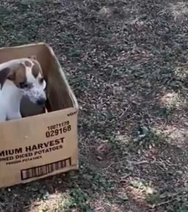 Esse filhote de cachorro tinha apenas 10 meses de idade quando alguém o colocou em uma caixa de papelão e abandonou. De coração partido, o cão passou a noite sentado lealmente dentro da caixa até que um bom samaritano o viu no dia seguinte.