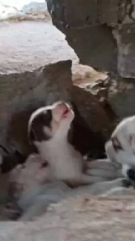 A surpresa se instalou ao encontrar sete filhotes enterrados sob a pilha de escombros. No entanto, por mais que estivessem aliviadas por finalmente localizarem os cães, sua missão estava longe de terminar. Os bebês estavam escondidos sob placas de concreto, que as escavadeiras ameaçavam nivelar.