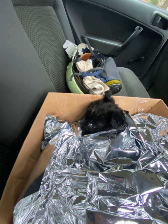Assim que receberam o chamado, a equipe entrou em contato com os Bombeiros Voluntários, para que também fossem ao resgate do pequeno filhote.