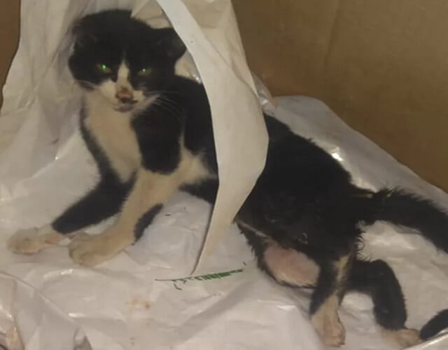 Na manhã desta sexta-feira (22), um filhote de gato foi encontrado com sinais de espancamento e abandonado em uma caixa de papelão em uma área de mata na Lagoa dos Patos, na Marginal da Anhanguera em Jundiaí (SP).