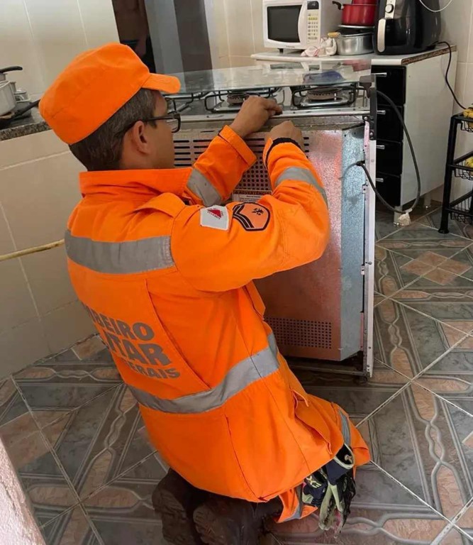 Um gatinho precisou ser resgatado por bombeiros após ficar preso dentro de um fogão nesta segunda (19) em Montes Claros (MG).
