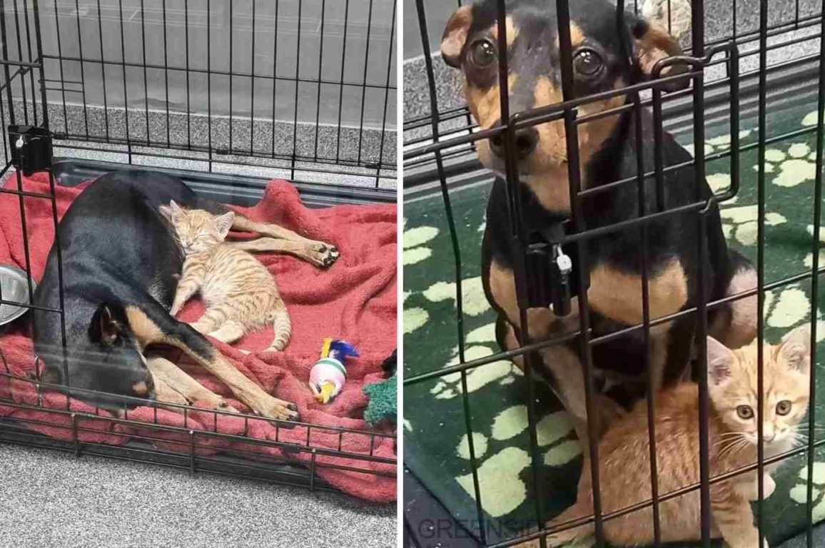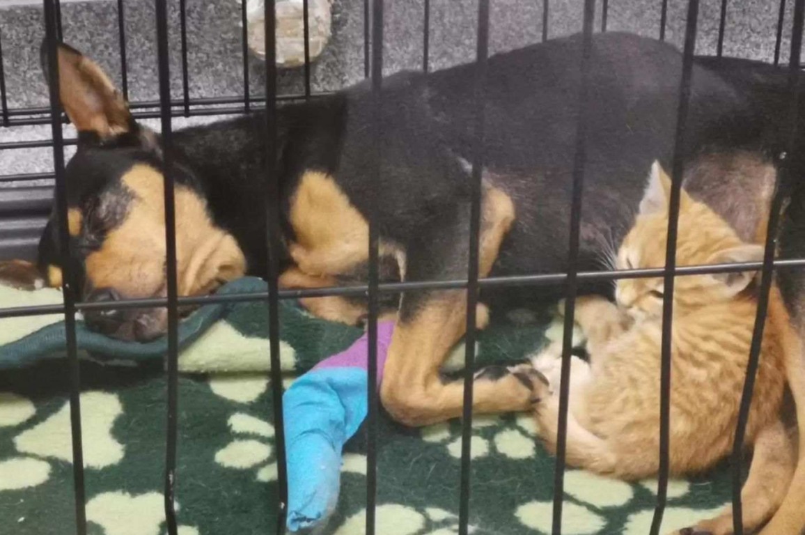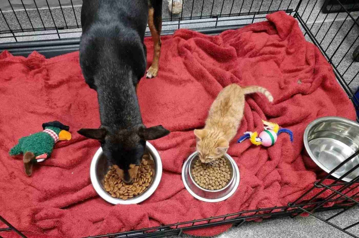 Normalmente, os gatos e cães do Greenside ficam em áreas separadas, mas a enfermaria de isolamento é um caso especial. As caixas de Anne e Ginger estavam em lados opostos da sala e eles não havia como terem contato algum, ou pelo menos, foi o que pensou a equipe.