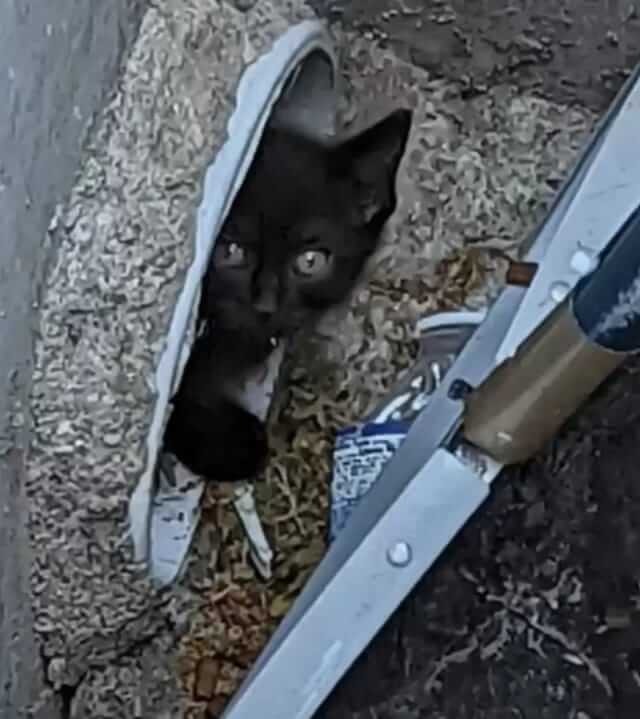 “Depois de se encontrar com Stephanie, a boa samaritana que reconheceu que havia um gatinho que precisava de ajuda. Ela me mostrou o dreno e explicou que tem o alimentado regularmente, então pelo menos não está morrendo de fome”, disse Tyson.