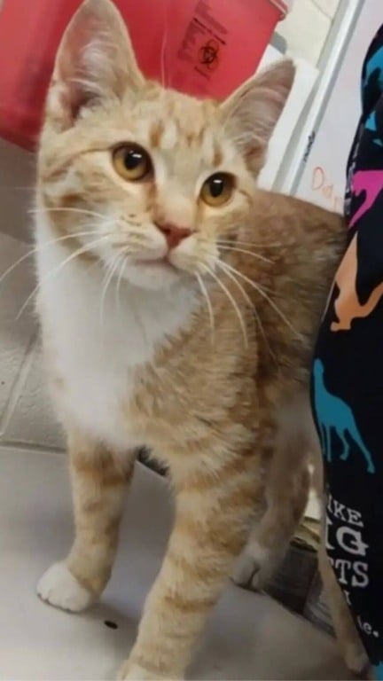 A oficial perguntou a alguns moradores locais se o gato era deles antes de levá-lo para uma ONG de resgate nas proximidades. De lá, foi apenas uma questão de dias até que ele alguém o adotasse.