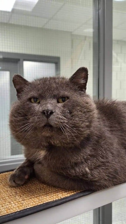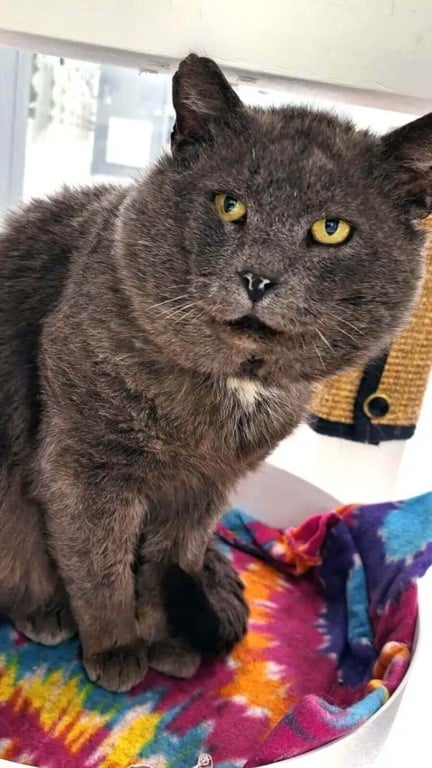 Um check-up com o veterinário revelou que ele tem o vírus da imunodeficiência felina (FIV). Mas isso não o está deixando lento. “Ele é um gatinho feliz e saudável!” acrescentou Hannah. Agora, o gato está seguro sob os cuidados do abrigo, mas ainda falta uma coisa em sua vida: um lar para chamar de seu para ele e suas bochechas gigantes.