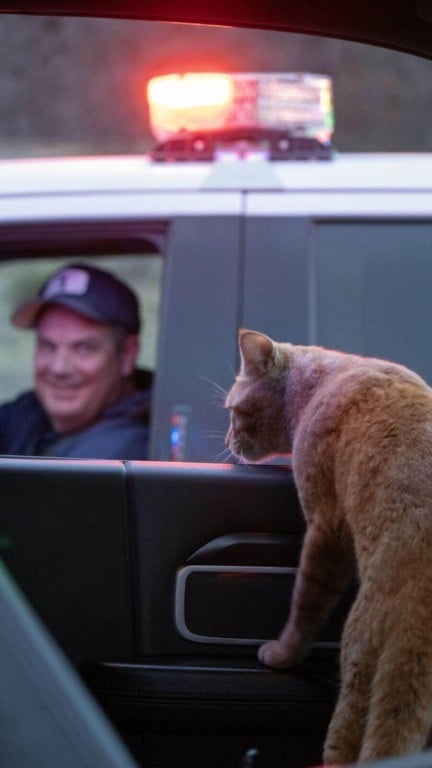 O gato de rua passeou pela cena do acidente, procurando maneiras de ajudar. Depois de receber carinho dos bombeiros, o gatinho foi até uma ambulância, o que imediatamente despertou sua curiosidade. “Ele entrou na parte de trás de uma ambulância, mas os bombeiros paramédicos tinham mais treinamento médico e o paciente não precisava de apoio felino. Sua próxima ideia foi dirigir a ambulância até o hospital e, embora o chefe tenha gostado da sugestão, dirigir provavelmente também não foi a melhor ideia.”