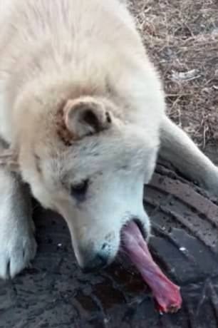 A expressão no rosto do cachorro era de terror e dor. Enquanto o generoso estranho despejava toda a água em sua língua, ele tentava acalmar o cachorro, que estava em uma situação desesperada. Quando a água acabou, sem sucesso, o homem pediu ajuda e rapidamente pegou mais água para libertar o cão. De fato, o efeito da água sobre a língua teve o resultado esperado em questão de segundos.
