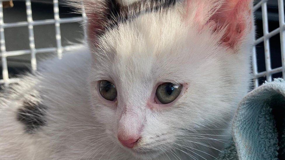 O gatinho, batizado como Tom, foi levado para um dos abrigos da organização, e agora esperam que sua história incomum o ajudem a encontrar uma nova família.