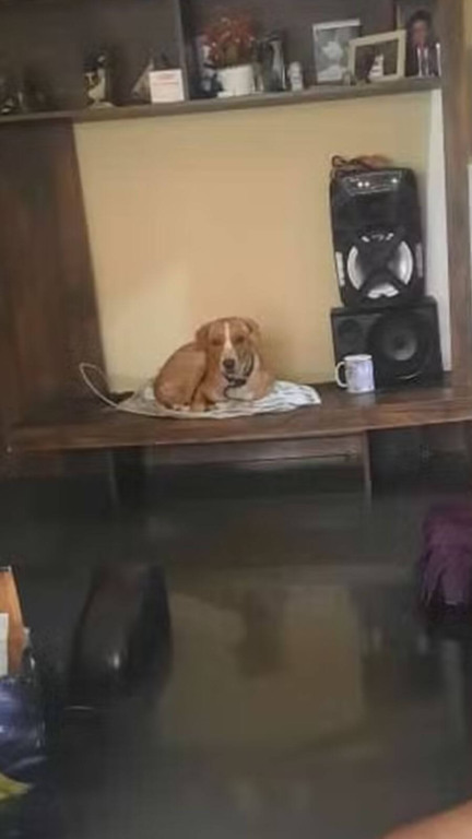 Ainda de acordo com a filha, o cachorro da idosa foi até ela, nadando no meio da enchente. Dona Norma o pegou, colocou panos para ele na estante e ali ele ficou.
