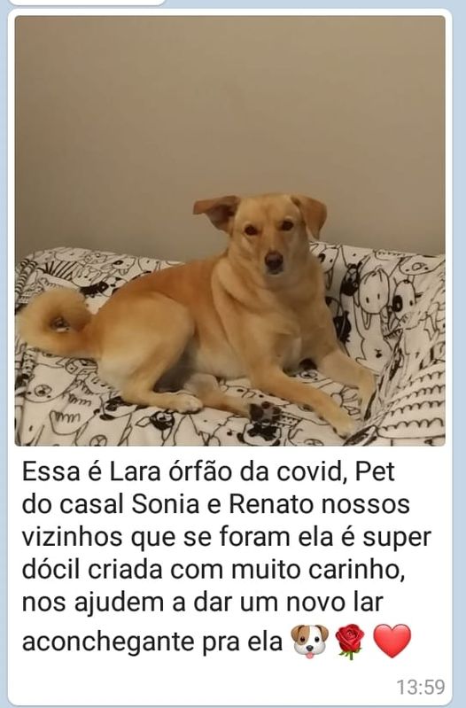 A UIPA (União Internacional Protetora dos Animais) de Jundiaí divulgou o caso da Lara, uma cachorra que ficou “órfã” após seus tutores morrerem em decorrência da Covid19. Agora, procuram um novo lar para ela.