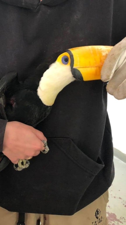 O tucano-toco chegou no dia 15 de setembro, encontrado pela Guarda Municipal de Vinhedo, machucado em um galpão de uma empresa. A equipe da Mata constatou que o tucano apresentava uma laceração debaixo da asa direita em razão do cortante da linha e não conseguia voar. O tucano-toco segue em tratamento clínico com medicação e apresenta quadros positivos de saúde.
