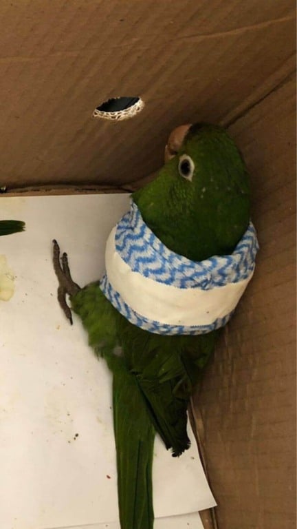 Após as primeiras análises, veterinários da associação constataram uma fratura na asa direita da maritaca, e iniciaram um tratamento com medicação e a uma tala para consolidar o osso. Enquanto isso, a coruja-orelhuda se encontra estável, mas seguirá sob observações comportamentais.