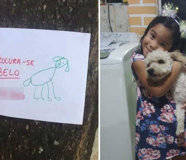 Um cartaz de “procura-se” com o desenho à mão de um cachorro ganhou repercussão nas redes sociais, em Boa Vista (RR). No anúncio, desenhado à mão com canetinhas, a pequena Maria Luiza Sena, de 4 anos, anuncia que estava procurando seu cachorro Belo, da raça poodle, que estava desaparecido.