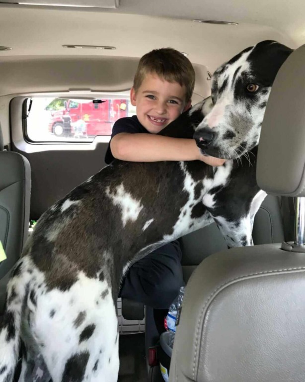 “Nós chegamos no abrigo e ele simplesmente passou pelos cachorro pequenos, indo direto para o maior Dogue Alemão que eu já vi”, conta a mãe do garoto. “A próxima coisa que eu ouvi foi ‘Feliz Dia das Mães, você vai comprar esse cachorro para mim, porque eu amo ele'”.