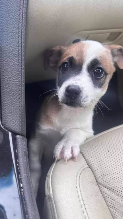 Ladybird tinha cerca de 6 a 7 semanas de vida e seus socorristas não conseguiam acreditar que alguém a abandonaria amarrada na beira da estrada daquele jeito. Ninguém tinha ideia de como o cachorro havia chegado ali, mas eles estavam felizes por ele estar finalmente em segurança.