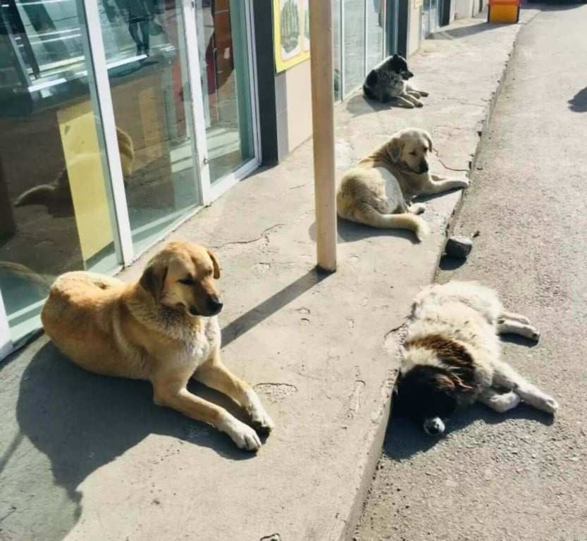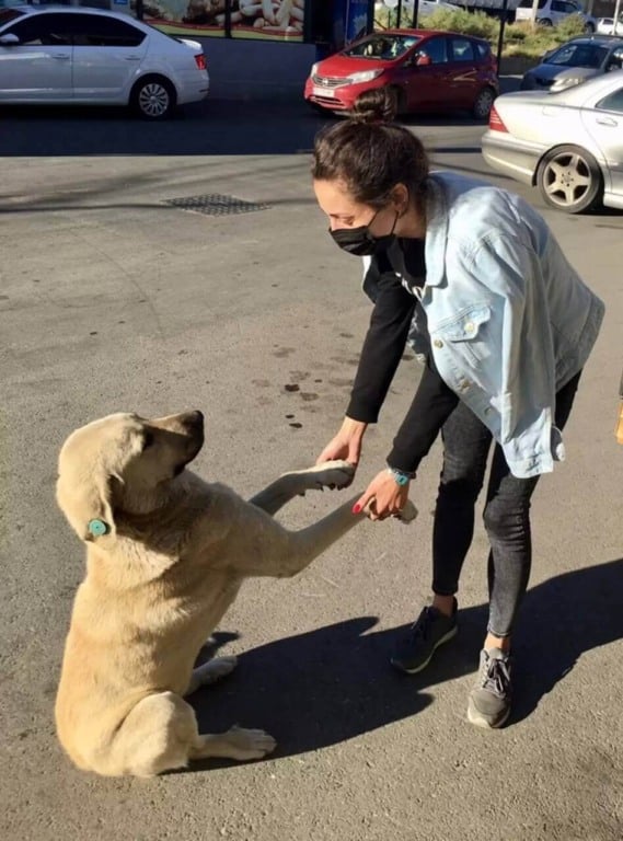A rua em frente ao prédio é onde vivem vários cachorros de rua, mas a razão pela qual eles escolheram aquele local não é por acaso. Nos últimos anos, uma das funcionárias, Nino Tabatadze, assumiu a responsabilidade de garantir o bem-estar dos cães.