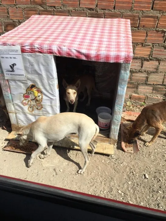 Teresina é uma das cidades mais quentes do país, e as casinhas ajudam e muito os cãezinhos a se protegerem. Adriana colocou as casinhas nas proximidades de sua casa, assim, ela sempre vai até lá para limpar, e colocar mais água e comida.