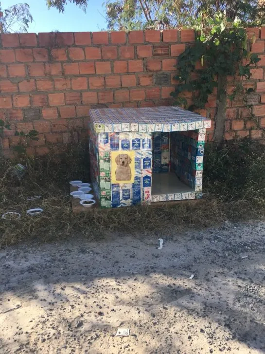 Adriana Serra, moradora de Teresina, teve uma ideia muito especial e original, usar caixas de leite para fazer casinha para cães de rua.