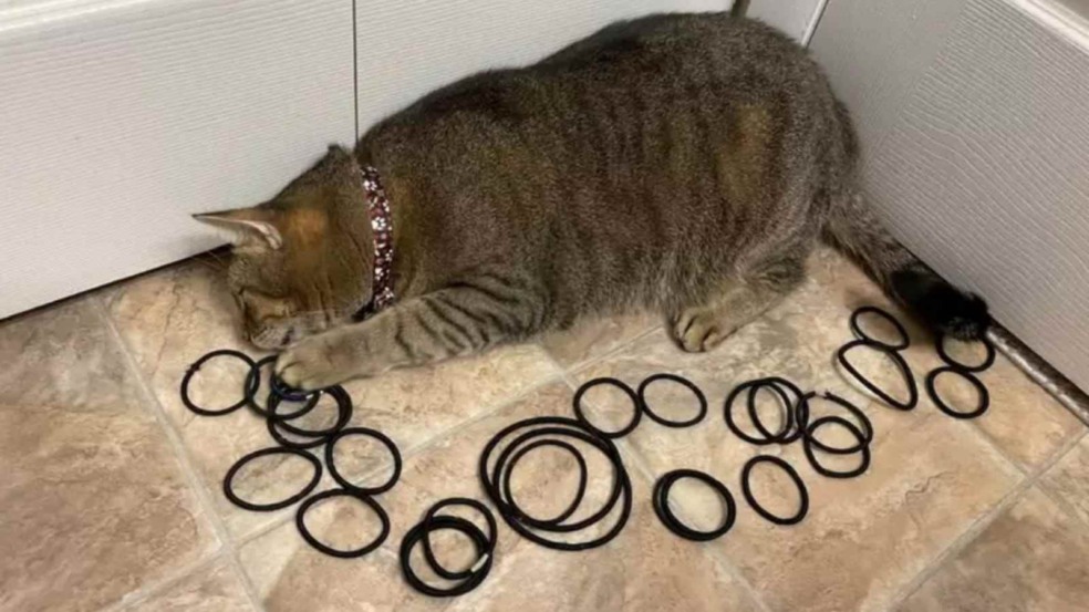 Desde que era uma filhotinha, Aloe nunca brincou com brinquedos comuns para gatos. Em vez disso, ela brica com laços de cabelo, sua coisa favorita em todo o mundo. A gata só precisa de laços de cabelo para ficar feliz.