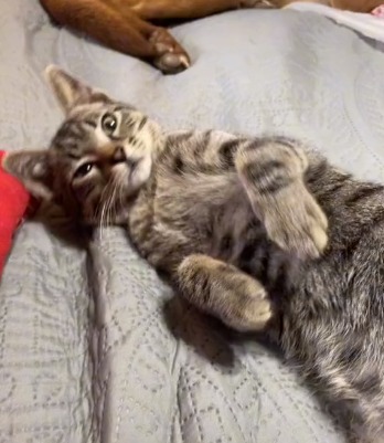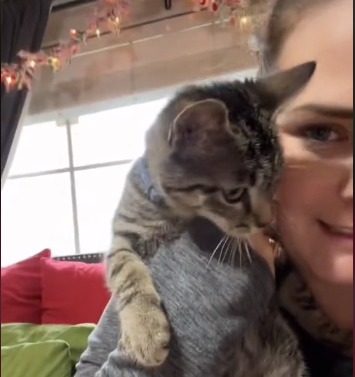 Infelizmente, um dos outros gatos de Toney, Mabel, fugiu há dois anos, deixando o outro gato, seu irmão Nigel, sozinho. “É por isso que eu sabia, no momento em que a tirei da ponte, que íamos ficar com ela porque ela também se parece muito com Mabel”, explicou Nicole.