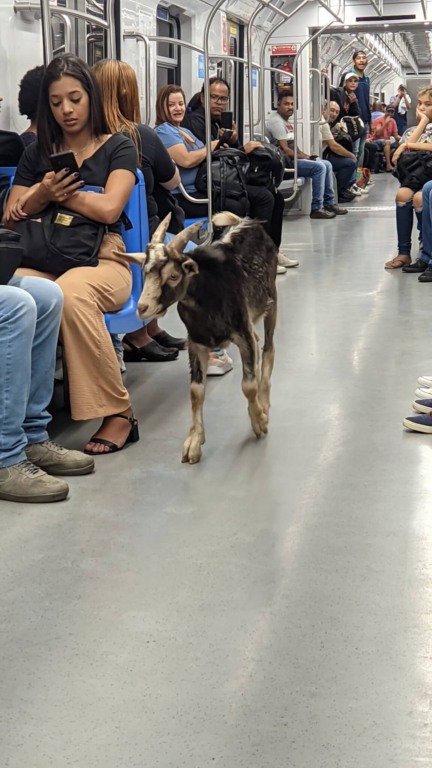 Na manhã desta terça-feira (9), passageiros se depararam com um bode dentro de um trem da Linha-7 Rubi, da CPTM. Vídeos e fotos do animal no transporte público viralizaram nas redes sociais. Nas publicações, é possível ver o bode sozinho andando pelo vagão.