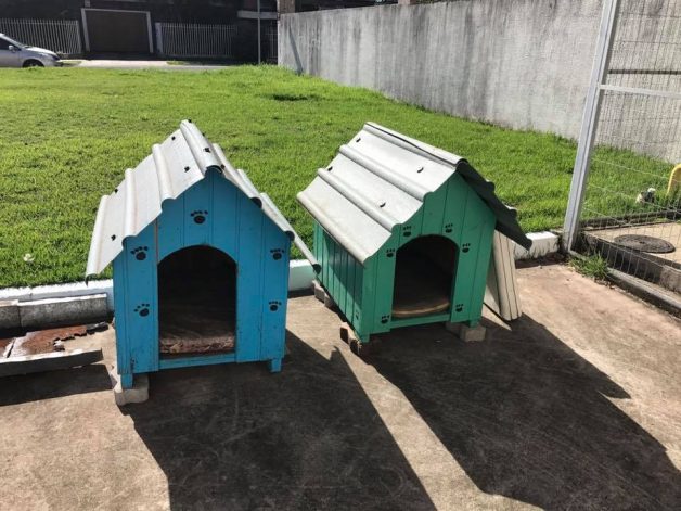 Os cães também ganharam novas casinha e recebem ração e água todos os dias.