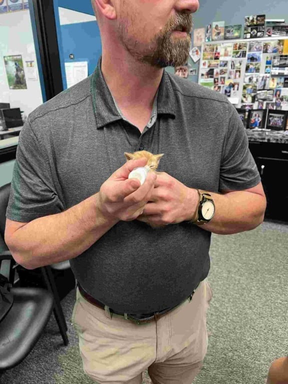 “O pessoal de aconselhamento e um ajudante de escritório de estudantes estavam incrédulos, uma vez que o nosso fantástico homem da manutenção do campus, Jake, conseguiu localizá-los e cortá-los do tecto”, disse Jones. “Os gatinhos pareciam esfomeados e gritavam enquanto eram resgatados”.